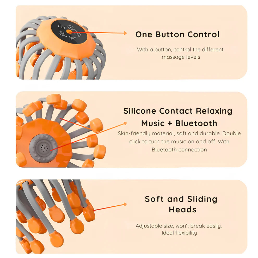 Experience soothing relaxation with soft, sliding silicone heads that adapt to your scalp.