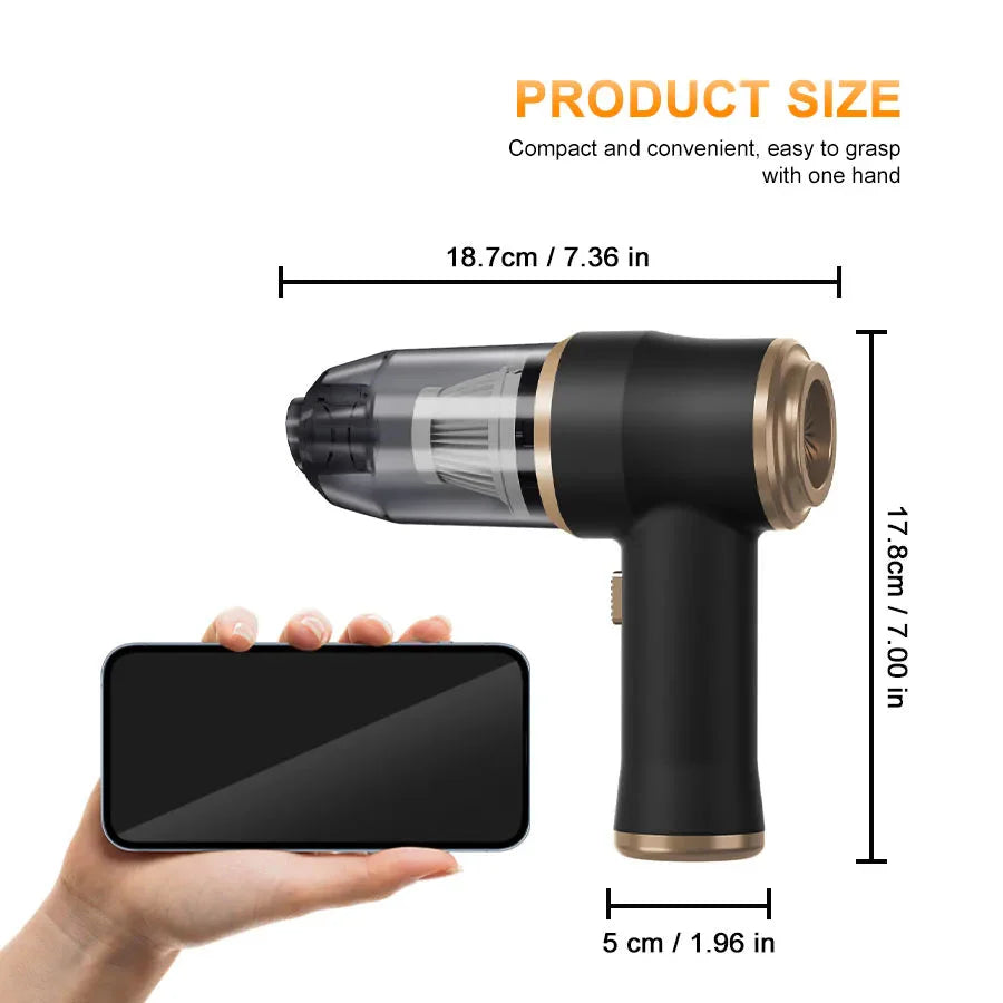 Tackle dust, dirt, pet hair, and crumbs anywhere with this powerful Portable Vacuum Cleaner — your new go-to for spotless cars, carpets, sofas, and more. Whether you're deep-cleaning car interiors or refreshing home upholstery, this vacuum packs high suction power in a compact, cordless design.
